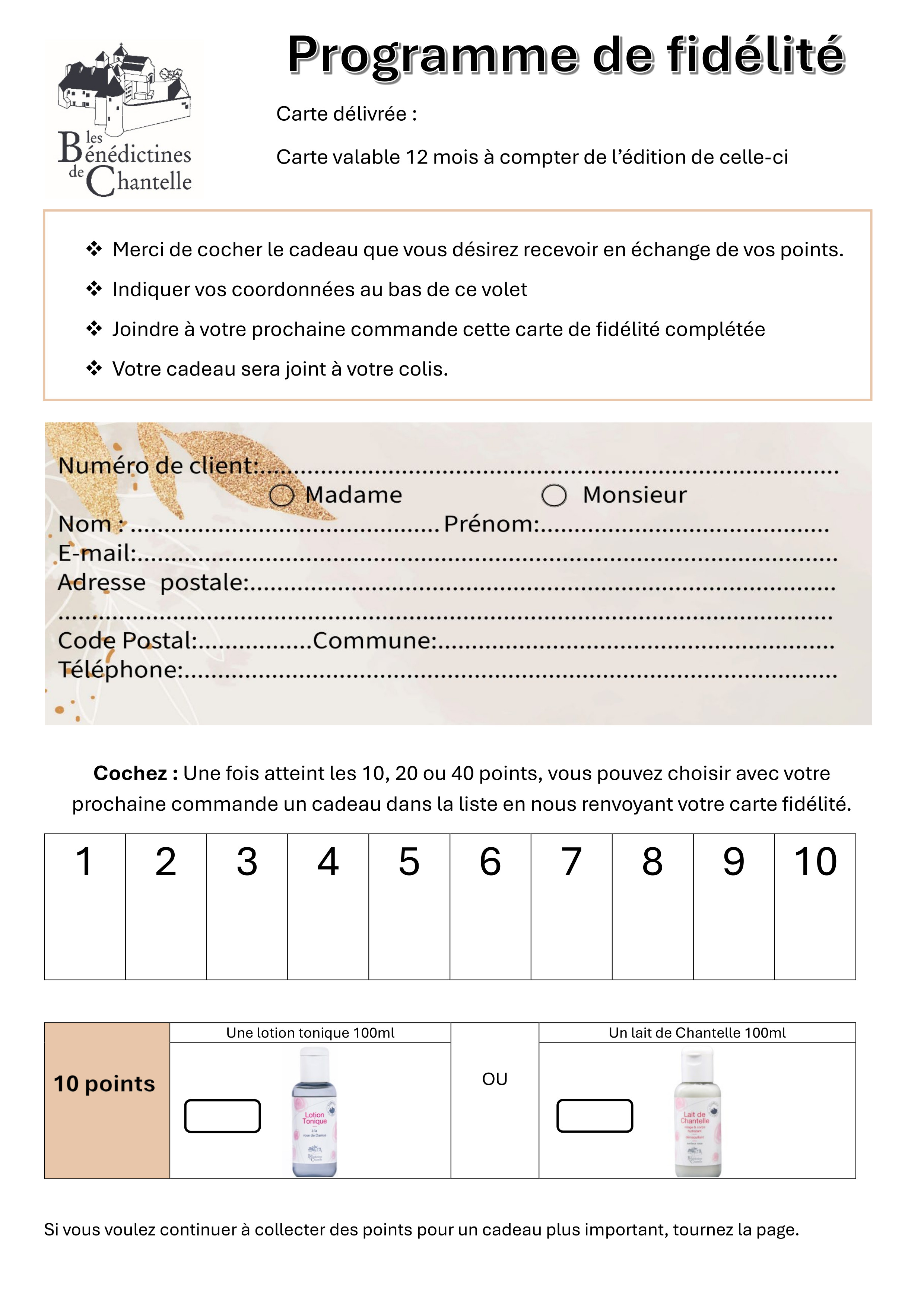 We failed to add your loyalty card in the package? Ouch, Ouch ... To quickly remedy this lack, simply download it by clicking on the following link, then print (if possible double-sided not to waste paper, and without enlargement) .