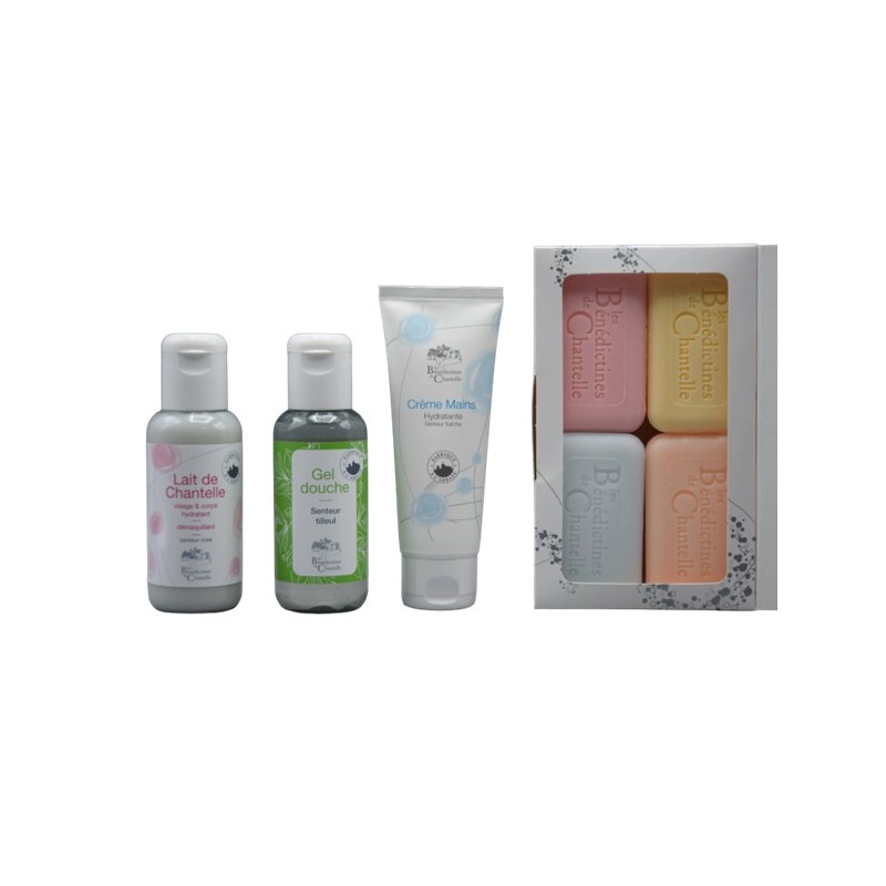 Un coffret de savons senteurs classiques, un tube de crème mains hydratante (à garder toujours avec soi !), le lait de Chantelle hydratant qui est une vedette de l’entreprise depuis ses débuts, un gel douche douceur senteur tilleul.